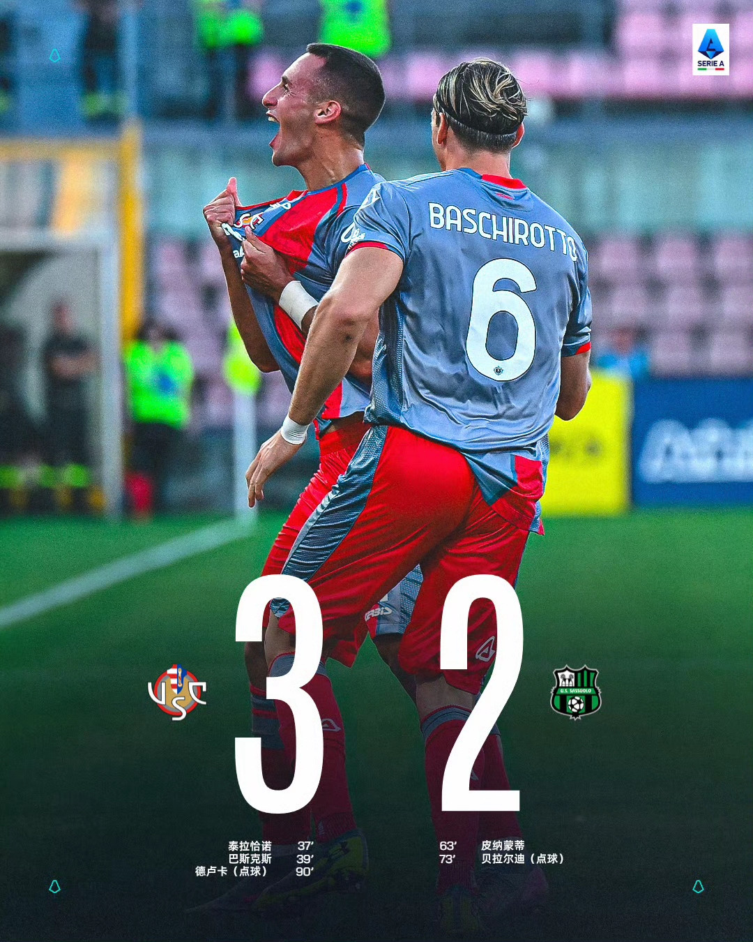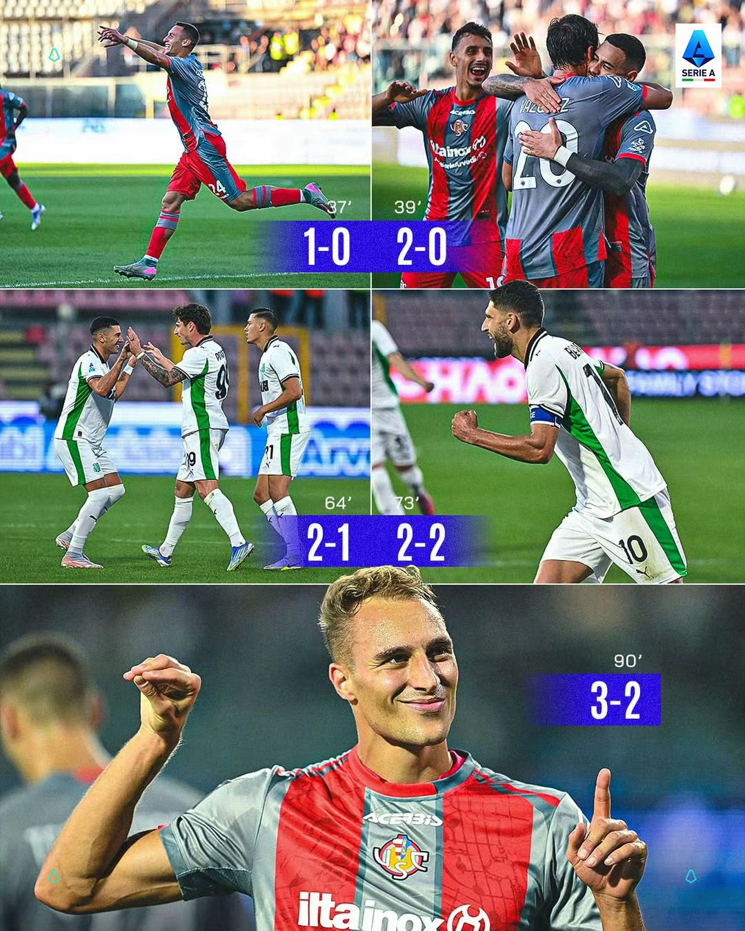 . Trong trận derby mới được thăng cấp, Cremona và Sassuolo đã tổ chức một trận chiến mục tiêu tuyệt vời. Cuối cùng, trước đây tiếp tục đàn áp Serie B mùa trước trước Green Barcelona, sau chiến thắng hẹp 3-2 trên sân nhà, anh đã giành được hai chiến thắng liên tiếp và tạm thời dẫn đầu bảng xếp hạng.