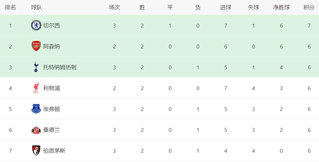 Trong bảng xếp hạng, Chelsea ghi được 7 điểm trong 3 trận, tạm thời xếp hạng trước. Arsenal xếp thứ 2 với 6 điểm trong 2 trận. Tottenham, Liverpool, Everton, Sunderland và Bournemouth cũng có 6 điểm. Rừng Nottingham và Manchester United có 4 điểm, xếp thứ 8 và 9.