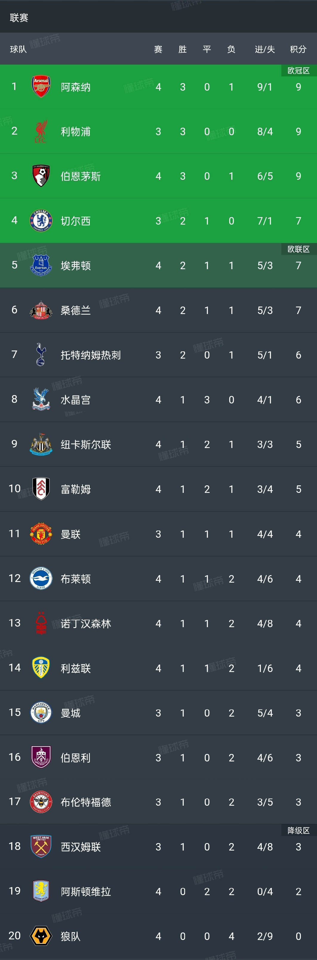 Arsenal tạm thời dẫn đầu với ba chiến thắng và một trận thua.
