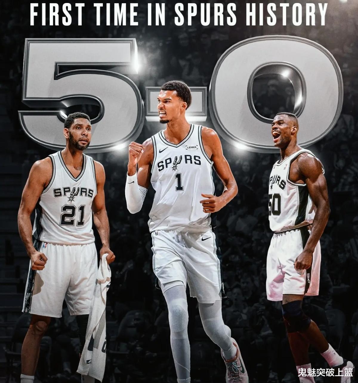 Điều đặc biệt đáng nói là Spurs khởi đầu mùa giải với 5 chiến thắng liên tiếp, tạo nên khởi đầu tốt nhất trong lịch sử đội bóng! Điều bạn cần biết là ngay cả HLV huyền thoại Gregg Popovich và tổ hợp huyền thoại “GDP” cũng chưa bao giờ đạt được 5 trận thắng liên tiếp đầu trận. Bằng cách này, điều này chắc chắn làm nổi bật sự “đặc biệt” và tiềm năng vô hạn của Spurs trẻ hiện tại.